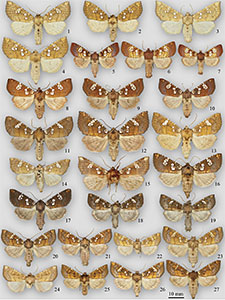 This is the second fascicle treating a portion of the New World apameine fauna. The North American species of the genera Amphipoea Billberg and Hydraecia Guenée are reviewed, and the genera Cherokeea Quinter and Sullivan, Franclemontia Ferguson, Papaipema Smith, Parapamea Bird, and Selicanis Smith (Noctuidae: Noctuinae: Apameini) are fully revised. Three new genera are described: Arundinariaphila Quinter (type species: Arundinariaphila hayesi Quinter), Fibigeria Quinter (type species: Gortyna erepta Grote), and Sarita Quinter (type species: Acrapex relicta Ferguson). Seventy-seven species are treated, eleven of which are described as new: Arundinariaphila hayesi Quinter; Cherokeea gabrielleae Quinter; Cherokeea odonnellae Quinter; Cherokeea slotteni Quinter; Papaipema albimontana Quinter; Papaipema amianthii Quinter; Papaipema blackorum Quinter; Papaipema hesseli Quinter; Papaipema matheri Quinter; Papaipema sablensis Quinter; Papaipema sullivani Quinter. Three new combinations are created: "Resapamea" trigona (Smith) is transferred to Cherokeea, "Amphipoea" erepta (Grote) to Fibigeria, and "Acrapex" relicta (Ferguson) to Sarita. Two neotypes and three lectotypes are designated. Three species are raised from synonymy: Papaipema rubiginosa Bird, Papaipema birdi (Dyar), and Papaipema depictata Benjamin. Gortyna aerata Lyman is deemed to be a hybrid of P. cataphracta x necopina and is placed into synonymy as an unavailable name. Numerous new life histories are reported. Adults and genitalic structures of all species are illustrated in color, and their larvae, where known, are as well. Keys to all genera are included, and species keys to adults, where practical, are included. Keys to larvae are included wherever sufficiently known. Selected images of habitats and host plant symptoms of larval damage are presented in color.